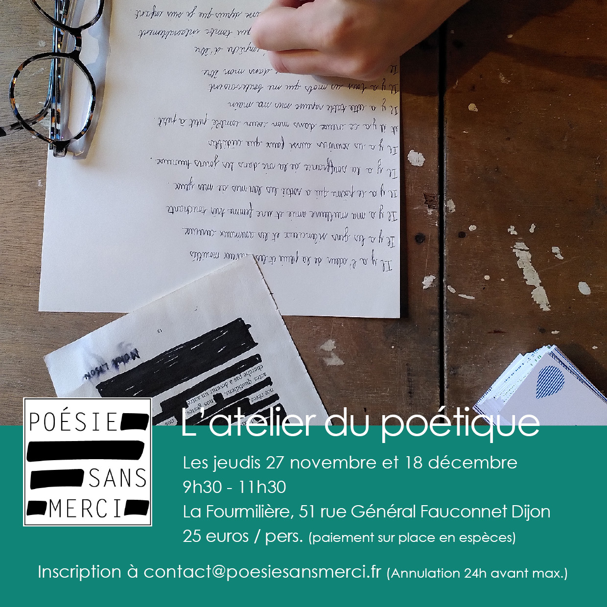 Inscription par mail : contact@poesiesansmerci.fr